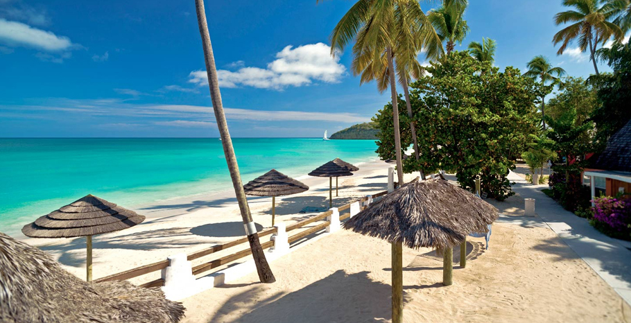 Voted the "World's Most Romantic Resort", Sandals Grande Antigua is set on Antigua's best and most famous beach, Dickenson Bay. Spend time in its charming seaside garden oasis, (Caribbean Grove) graced by meandering pathways, majestic palms and cooling trade winds or step into a realm of chic sophistication where European grandeur unfolds from the hillside to villas-by-the-sea. Join Meredith and James on one of the most romantic holidays of a lifetime. Two perfect worlds. One grand resort. All included.